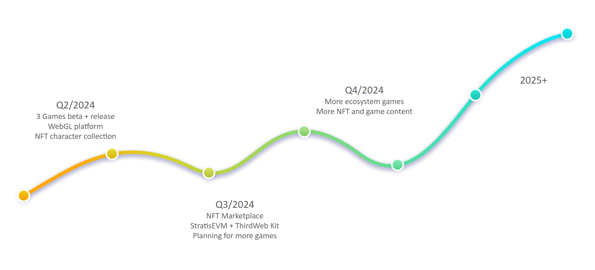 Ecosystem of mobile games which reward players with NFT's. Cross-Game Character concept is achieved through NFT's as players can play different games with owned characters.